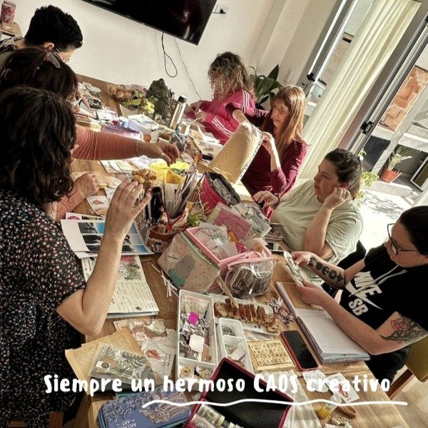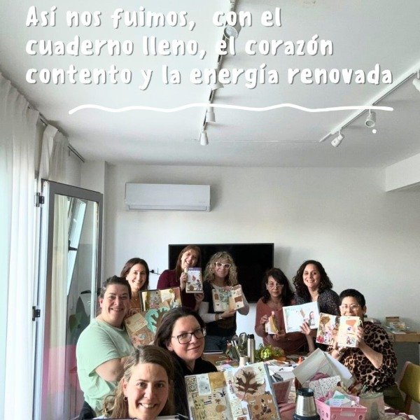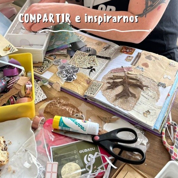 Nos juntamos cada una con su cuaderno y sus materiales, para crear, charlar y llenar juntas nuestras páginas✂️